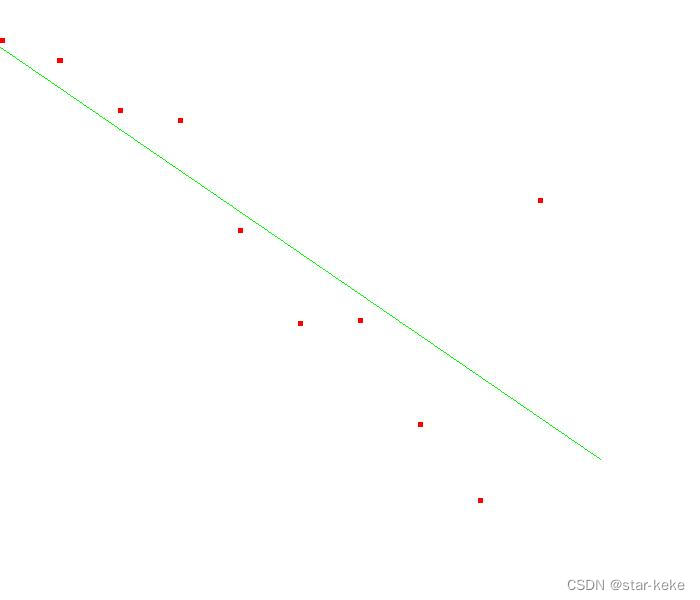 void least_square_line(double input[][2], int number, double&k, double&b){Eigen::MatrixXd MatX;Eigen::MatrixXd MatY;MatX.resize(number, 2);MatY.resize(number, 1);Eigen::MatrixXd MatLS;MatLS.resize(number, 1);for(int i = 0; i < number; ++i){MatX.row(i) = Eigen::Vector2d(input[i][0], 1);MatY(i, 0) = input[i][1];}MatLS = (MatX.transpose()*MatX).inverse()*MatX.transpose()*MatY;//MatLS = MatX.colPivHouseholderQr().solve(MatY); //也可以用k = MatLS(0,0);b = MatLS(1,0);