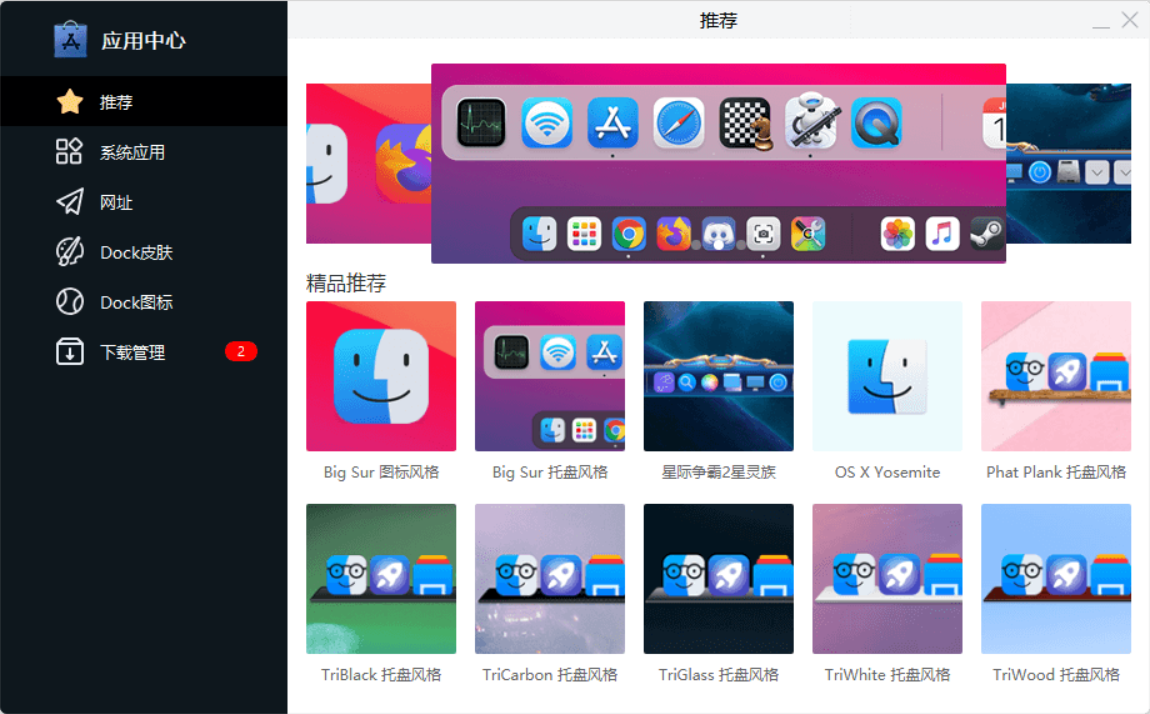 商店的网址页面收录了大量常用网址,一键加入dock栏。