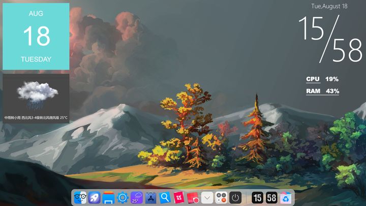 最后介绍一下桌面工具,BitDock集成了桌面插件可以提供时钟、日历、天气预报、系统状态等功能。
