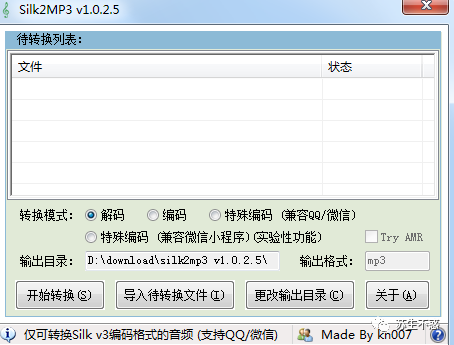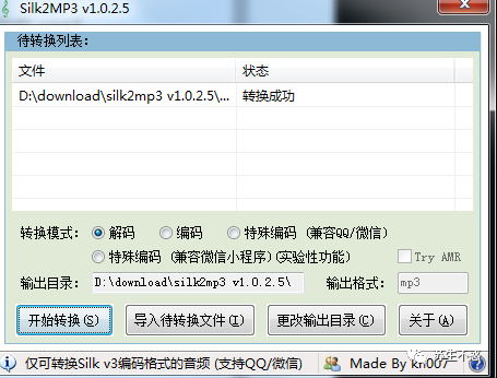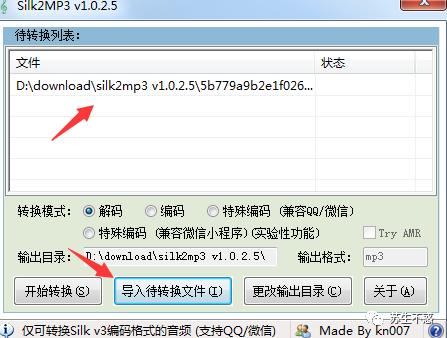 获取)将silk转换为mp3文件。选择刚才的silk文件,可以多选。