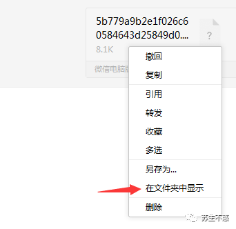 右键选择在文件夹中显示找到刚才发的语音文件,格式为.silk