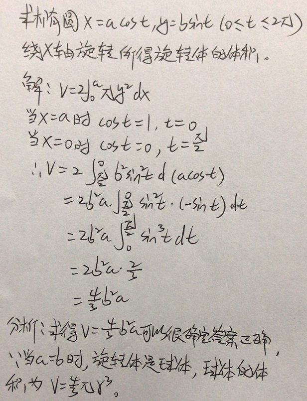 方法一:对y积分(Disks) 如图所示,盘片的面积为 π x 2 \pi x^2 πx2,厚度为 d y dy dy的盘片的体积为 d V π x 2 d y dV\pi x^2dy dVπ…