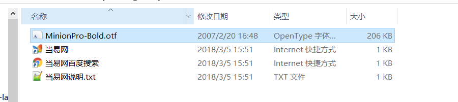 6.下载解压后得到类似下面的文件,我们需要的是MinionPro-Bold.otf文件,双击打开它。