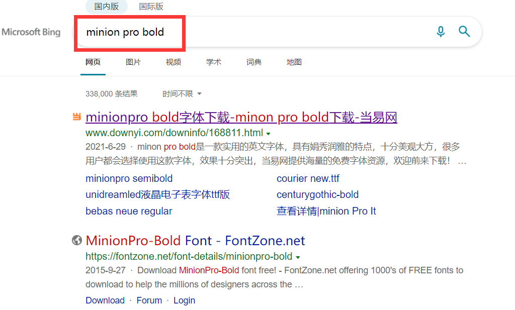 5.经搜索我们发现确实缺少了我们所使用字体,至此,我们就找到了字体不能加粗的原因。此时我们需要去下载我们需要的字体。 我们需要的是Minion Pro的粗体,那么可以直接安装粗体。
