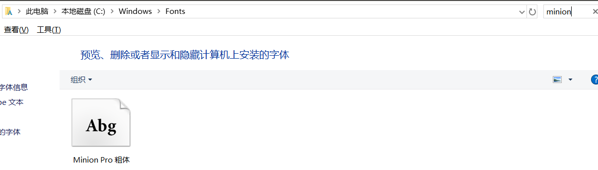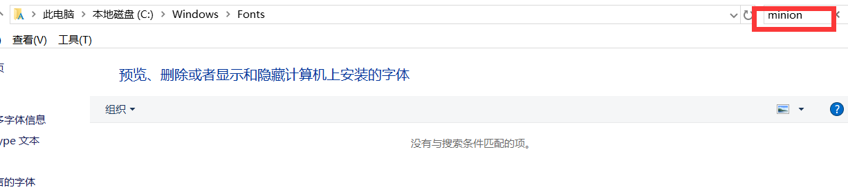 4.弄明白自己文章中使用的是哪种字体之后,就可以去操作系统的字体库里面去查看是不是缺少这种字体,我们还以Minion Pro字体为例。