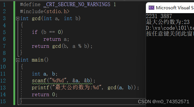 对辗转相除足够熟悉后,可以采用递归的方式,如算法实现三