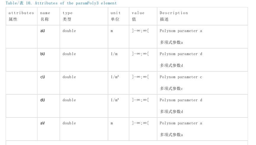 在OpenDRIVE中,三次多项式用 <geometry> 元素里的 <poly3> 元素来表示。