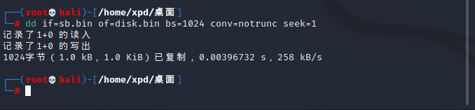 dd if=sb.bin of=disk.bin bs=1024 conv=notrunc seek=1