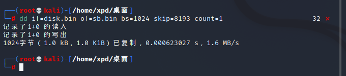 提取文件系统中的8193块超级块(约占1k大小)这里选择bs=1024。