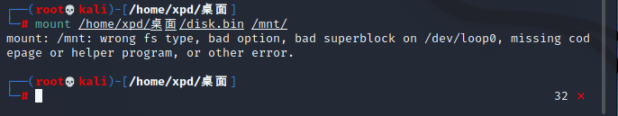 在root用户下mount挂在"disk.bin"文件,发现报错: