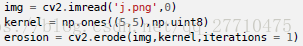 卷积核沿着图像滑动,如果与卷积核对应的原图像的所有像素值都是1,那么中心元素就保持原来的像素值,否则就变为零。