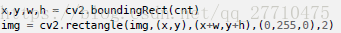 画矩阵:cv2.rectangle();左上角顶点和右下角顶点坐标。