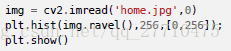 使用函数cv2.calcHist() 来计算直方图既简单又方便。如果要绘制颜色直方图的话,我们首先需要将图像的颜色空间从BGR 转换到HSV。(记住,计算一维直方图,要从BGR 转换到HSV)。