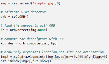 OpenCV 也提供了绘制关键点的函数:cv2.drawKeyPoints(),它可以在关键点的部位绘制一个小圆圈。
