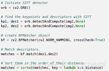 首先要使用cv2.BFMatcher() 创建一个BFMatcher对象。它有两个可选参数。第一个是normType。它是用来指定要使用的距离测试类型。默认值为cv2.Norm_L2。。这很适合SIFT 和SURF 等(c2.NORM_L1 也可以)。对于使用二进制描述符的ORB,BRIEF,BRISK算法等,要使用cv2.NORM_HAMMING,这样就会返回两个测试对象之间的汉明距离。