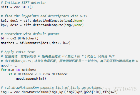 使用FLANN匹配,需要传入两个字典作为参数,其用来确定要使用的算法和其他相关参数等。