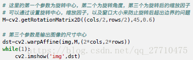 提供cv2.getRotationMatrix2D函数构建上旋转矩阵。