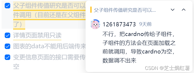 但是最近又有一个类似的功能需要用到父子组件传值,终于算是把父子组件传值整明白了一点。首先一个问题就是,所有的方法都要写在父组件里。我本来想把cradno传给子组件,然后在子组件里调用所有的方法(因为需要调用的方法太多了)。但是发现不可以。因为子组件的方法调用,在父组件把cardno传给子组件之前。(我是真的不知道可以不可以,可能真的也是可以的,只是我不会。)