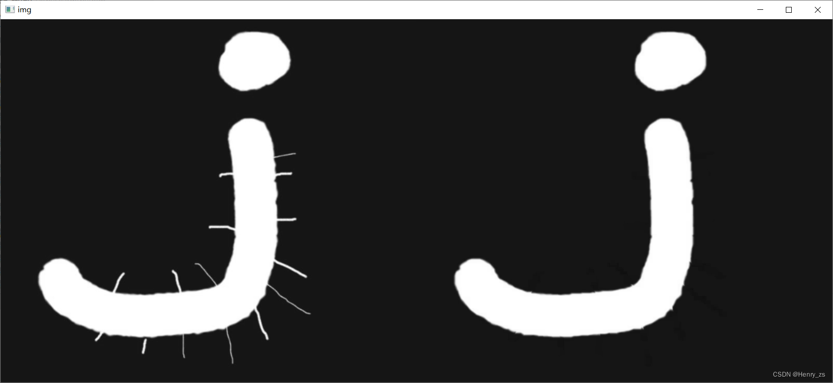 dst = cv2.morphologyEx(img,cv2.MORPH_OPEN,kernel,iterations=5)cv2.imshow('img',np.hstack((img,dst)))