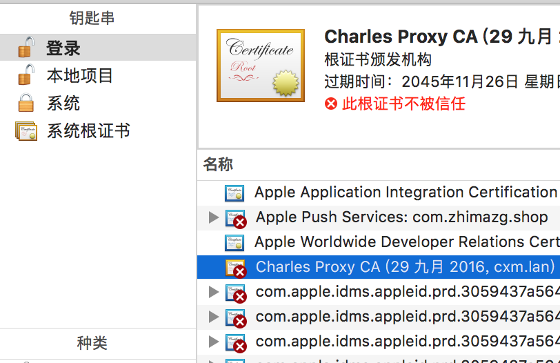 将手机上“已安装证书”中的 Charles 证书删除,并用之前下载到手机上的证书文件重新安装一次(无需重新下载)。
