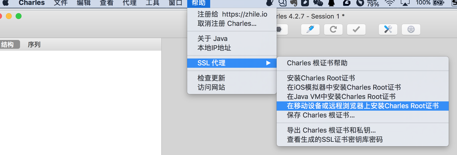 声明一下:我的 Charles 是汉化版的,大家如果是英文版的也可以对比名称自己找对应的选项去操作。