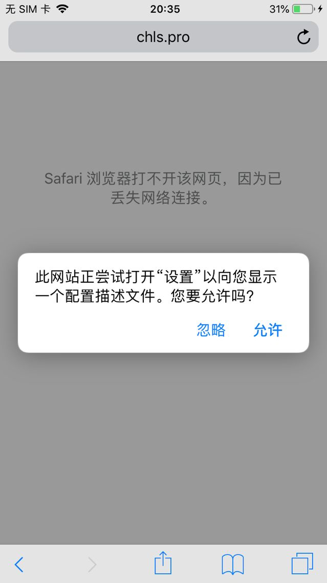 - 打开浏览器在地址栏输入 chls.pro/ssl,会提示下载证书