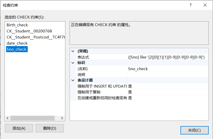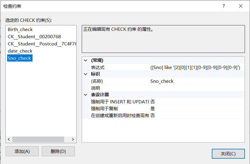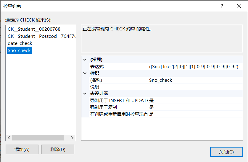 a.为student表的Sno字段添加一个check约束,使学号满足如下条件:学号前四位为2011,学号后四位为数字字符。