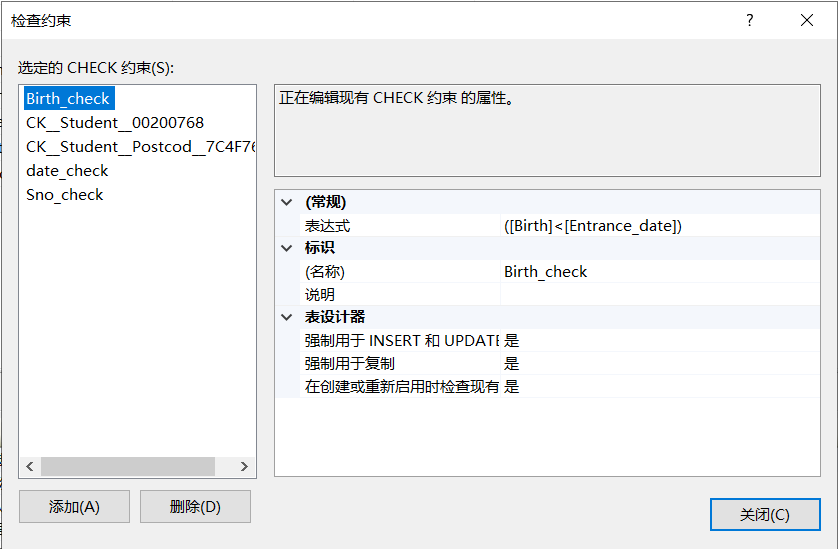 a.为表Student的Birth字段创建检查约束,使输入的生日日期小于系统日期。