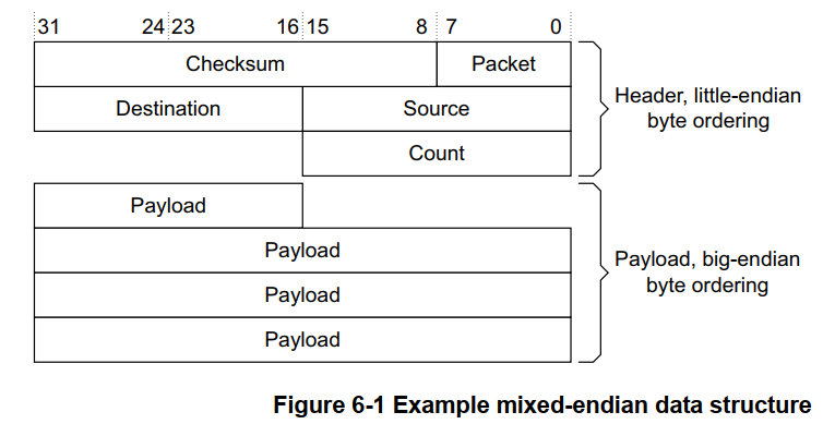 例如,在这个结构中,Count是一个两字节的小端元素,这意味着它的最低地址是它的LS字节。字节不变性的使用确保了对负载的大端访问不会破坏小端元素。