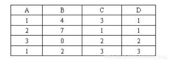 12.下面给出的关系表r(A,B,C,D)满足下述哪个函数依赖 ( B )