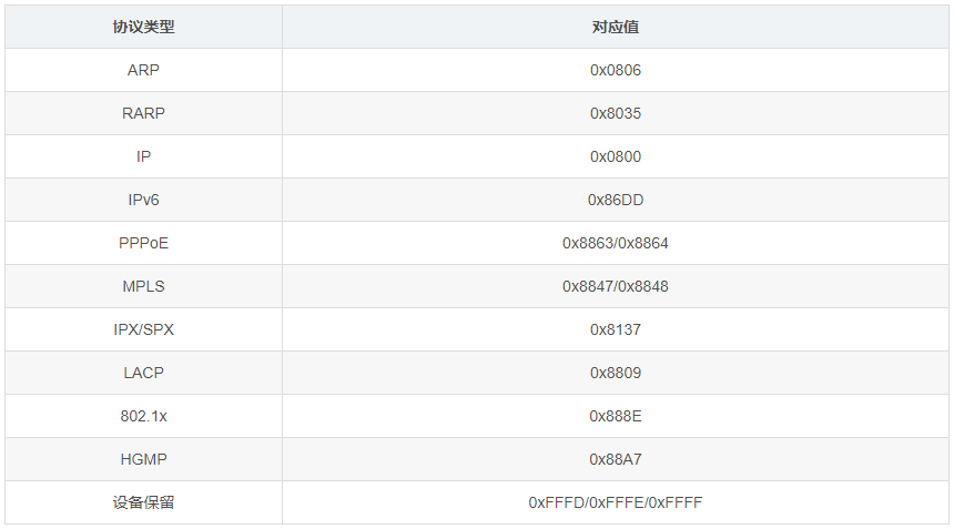 另外,不同运营商的系统可能将QinQ帧外层VLAN标记的TPID设置为不同值。为实现与这些系统的兼容性,可以修改TPID值,使QinQ帧发送到公网时,承载与特定运营商相同的TPID值,从而实现与该运营商设备之间的互操作性。以太网帧的TPID与不带VLAN标记的帧的协议类型字段位置相同。为避免在网络中转发和处理数据包时出现问题,不可将TPID值设置为下表中的任意值: