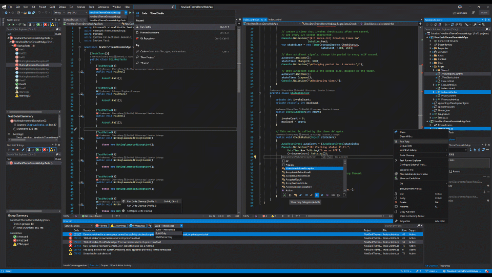 在 Preview 3 中,Dark 主题将会拥有巨大变化,以提高 Visual Studio 的可用性。新的 Dark 主题有一个新的强调色,旨在减少分心和眼睛疲劳。该颜色与最新的产品视觉识别相匹配,可帮助用户在多个工具之间导航时快速找到正确的窗口。