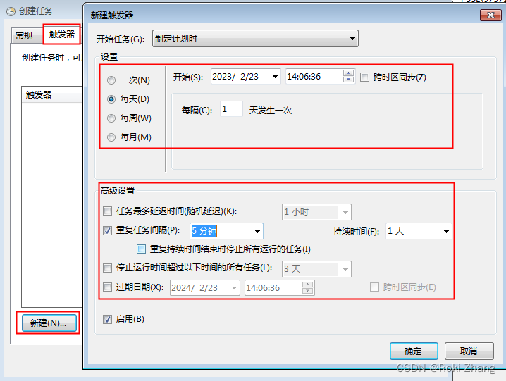 4. 触发器 => 新建 => 填写相关设定 => 确定