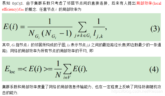 节点的局部效率:给定节点的本地效率度量该节点被删除时,该节点的第一个邻居之间的通信效率。