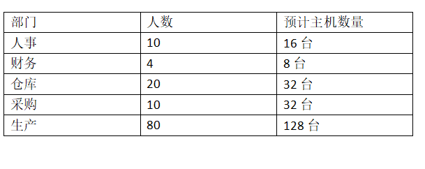 (1、看到这种问题就是需要先构思,每个部门需要多少主机位置,以及预留空位,方便后面增加主机。