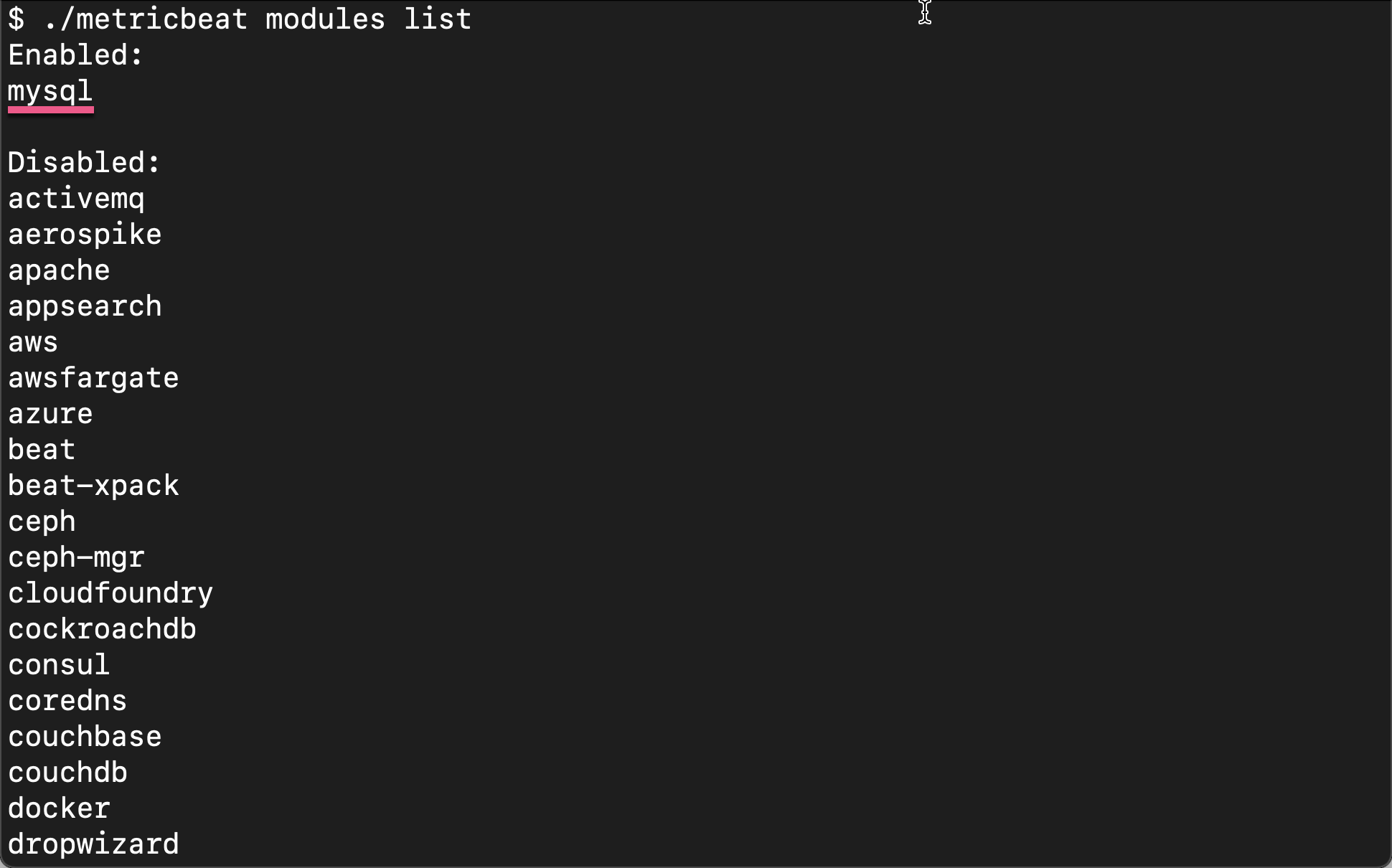 ./metricbeat modules enable mysql