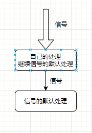 第二种:当信号来时,catch 信号,调用自己的处理函数,执行完之后,继续调用信号默认的处理。