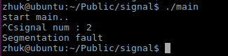 XXXXXX$ ./main (执行./main后,ctrl+c产生信号)