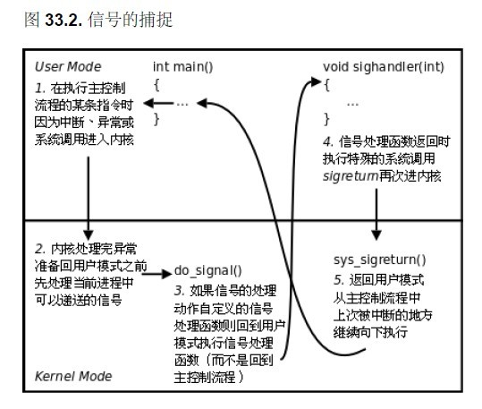 第一种:当信号来时,catch 信号,调用自己的处理函数后信号结束。