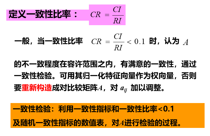 if CR<0.10disp('CR<0.10, 所以该判断矩阵A的一致性可以接受!');