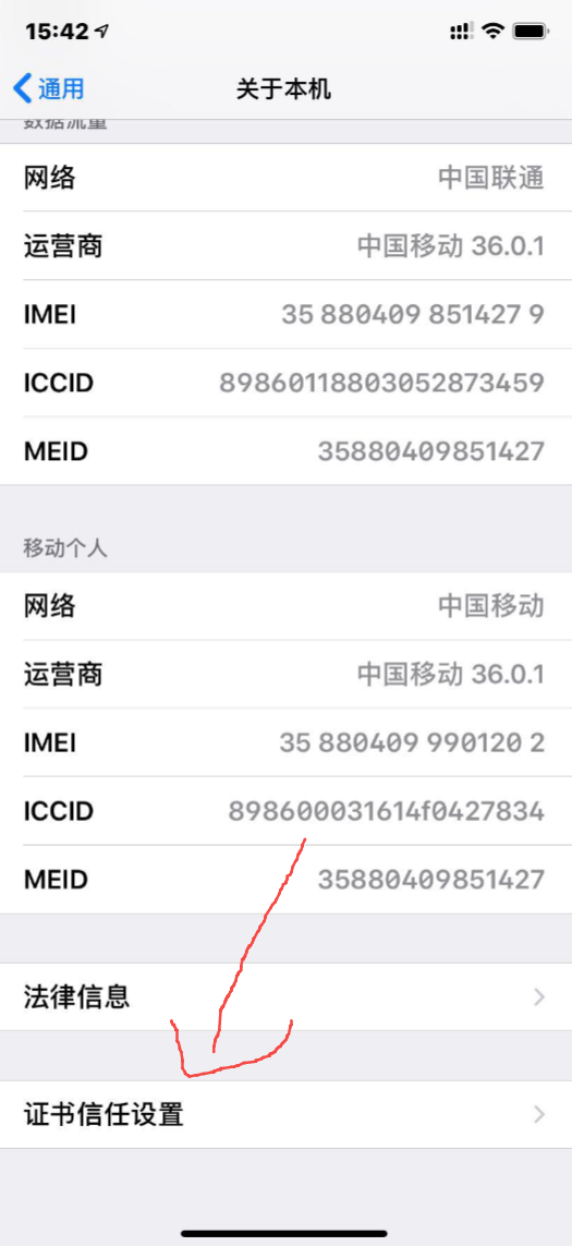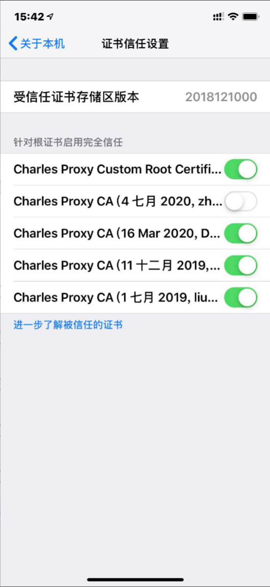 进入手机设置的关于本机 最下方有一个证书信任设置