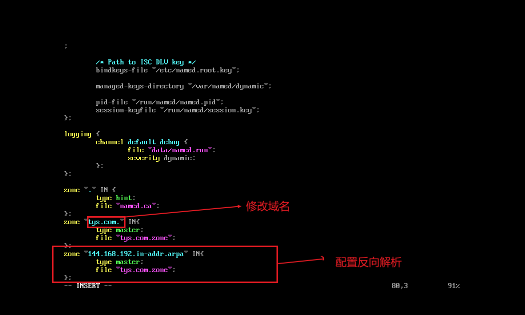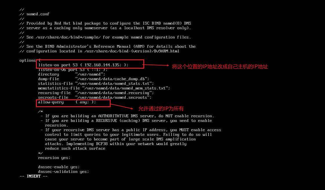 2,vim /etc/named.conf 配置文件,进行如下修改