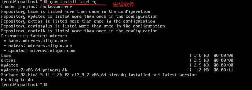 在安装DNS服务器时,确保虚拟机防火墙和selinux是关闭状态:安装软件bind yum install bind -y