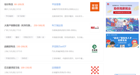 通过输入url【www.shixiseng.com】,打开实习僧网站,点击【搜索】按钮打开查询结果页面