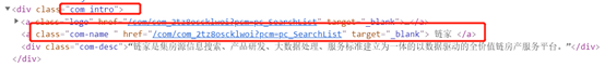 分析详情页,公司信息的html定位信息为:.com_intro .com-name
