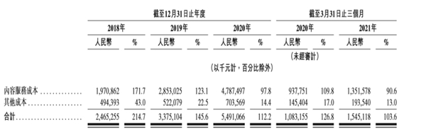 即使如此,整体亏损情况已呈现显著收窄的趋势。网易云招股书显示,毛亏损从 2018 年的 13 亿元,减少到 2020 年 6 亿元。毛亏损率也随之显著收窄,从114.7%降至45.6%,并在 2020 年降至12.2%。 2021 年Q1 毛亏损率更是低至3.6%。由此可以推测,后续网易云音乐毛利率转正问题不大。