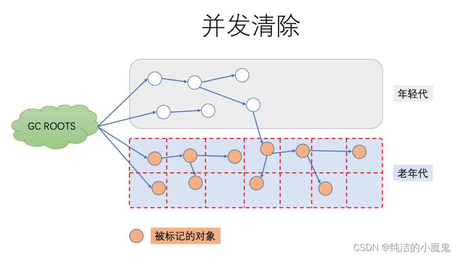 2. 在 mark-and-sweep (标记-清除) 阶段的大部分工作和应用线程一起并发执行。