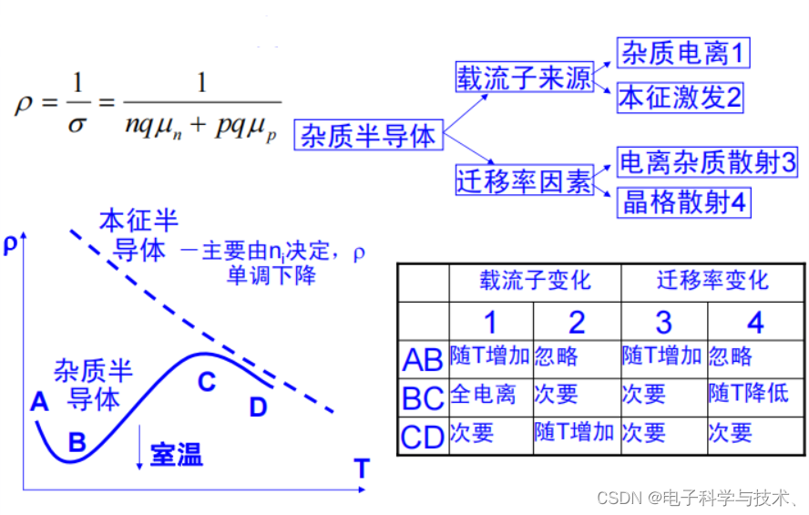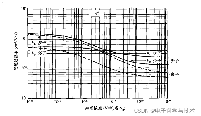 在轻掺杂区域(参杂浓度小于10^18次方):掺杂浓度的变化对迁移率的影响并不明显;