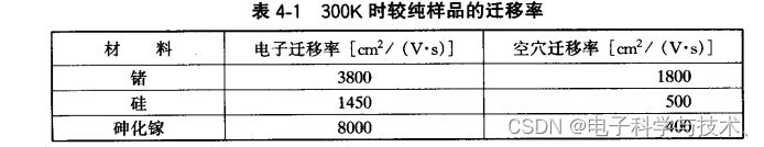 ——电子的电导有效质量小于空穴电导有效质量,因此电子迁移率大于空穴迁移率(2倍关系)