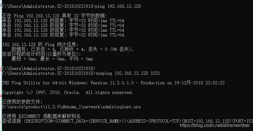 打开cmd,tnsping 数据库IP
